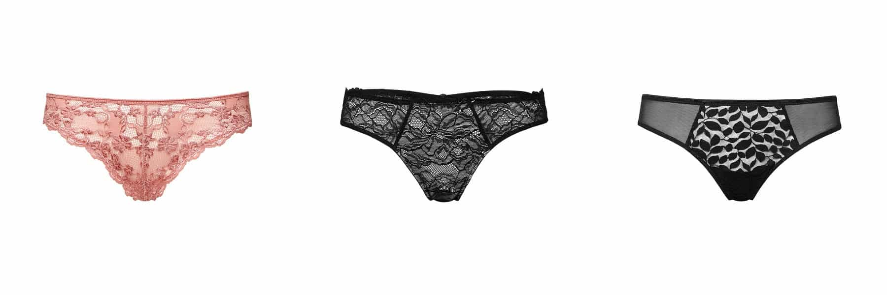 Il pizzo la fa da padrone negli slip brasiliana più audaci e sensuali. Come lo slip con delicata trama floreale, realizzato completamente in pizzo ricamato; colore tenue e forma femminile per un capo elegante e chic. Ricami in pizzo anche per lo slip brasiliana della linea Liquirizia, dove il dettaglio del ricamo floreale in pizzo rende particolarmente glamour e sensuale questo capo. Il pizzo si unisce al tulle nella brasiliana della linea Anice; inserti ricamati con fantasia floreale (foglie in particolare) e colore tono su tono accompagnato da una sensuale trasparenza.